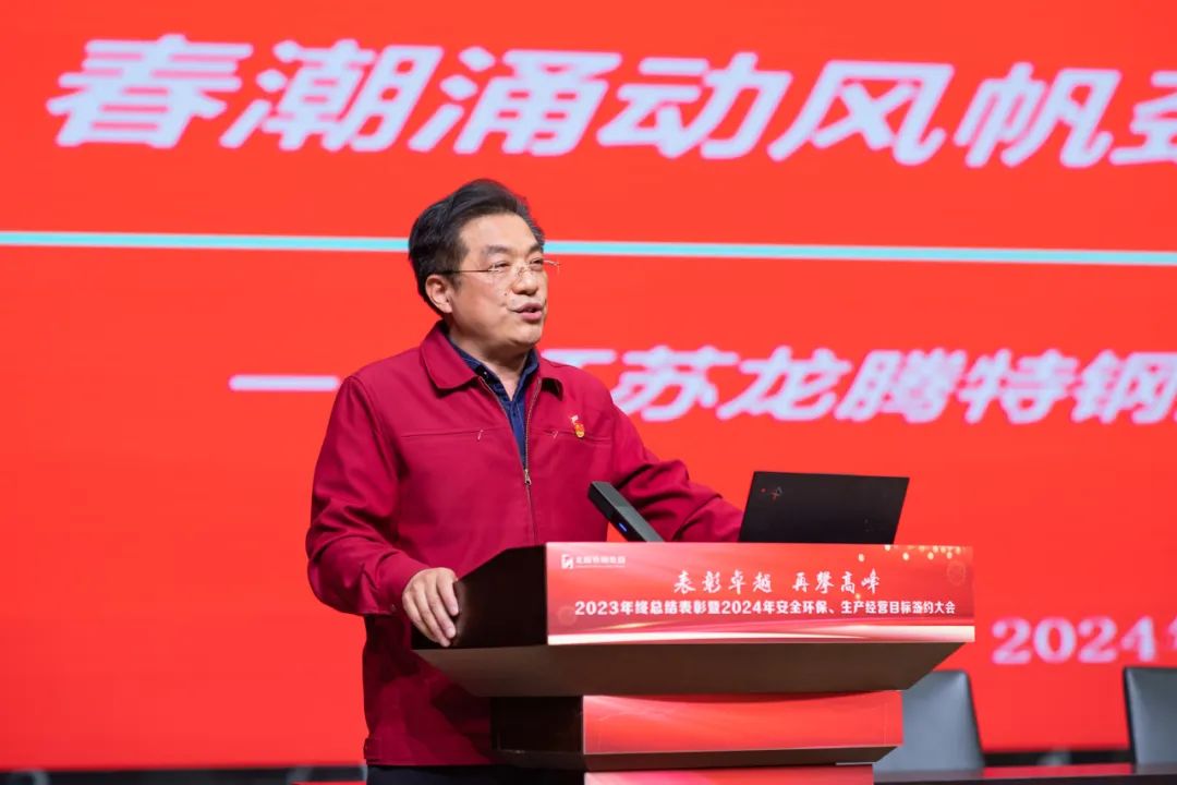 2024年1月22日,江蘇龍騰特鋼集團(tuán)隆重召開(kāi)2023年工作總結(jié)表彰暨2024年安全環(huán)保、生產(chǎn)經(jīng)營(yíng)目標(biāo)簽約大會(huì)。大會(huì)全面總結(jié)了公司2023年度取得的各項(xiàng)成績(jī),表彰了工作中涌現(xiàn)出的先進(jìn)集體和個(gè)人,并全面部署了2024年度各項(xiàng)目標(biāo)任務(wù)。