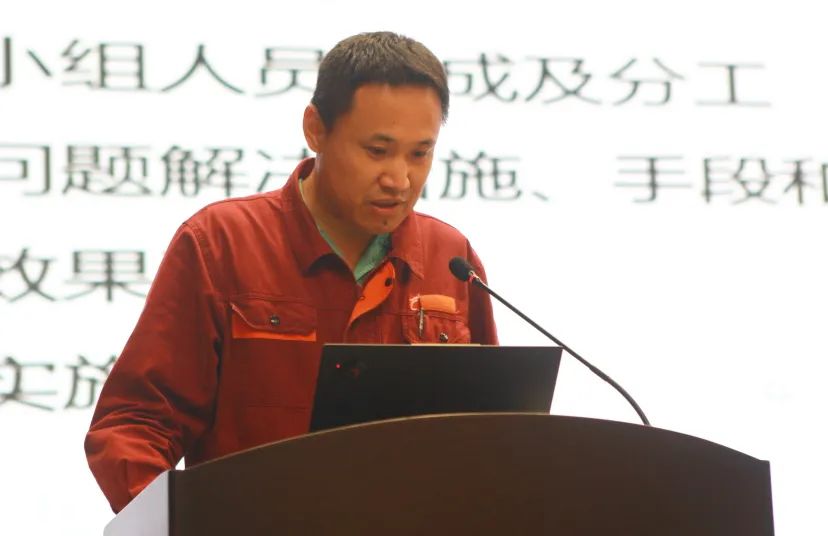 特鋼公司轉(zhuǎn)爐分廠湯佳勇作《高效測量鋼絲繩卷筒安裝精度法》課題匯報。