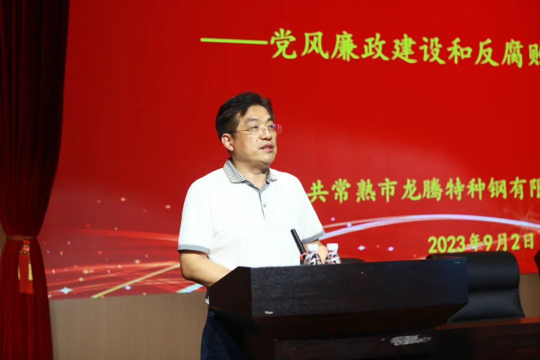 為進(jìn)一步加強(qiáng)公司各級(jí)黨員干部和關(guān)鍵崗位人員的思想作風(fēng)建設(shè),持續(xù)推動(dòng)各級(jí)黨員干部和關(guān)鍵崗位人員時(shí)刻牢記“忠誠、干凈、擔(dān)當(dāng)、作為”的責(zé)職使命,9月2日下午龍騰特鋼特邀常熟市“碧水琴川”黨風(fēng)廉政宣講團(tuán)講師為員工進(jìn)行廉潔專題教育。