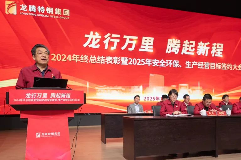 2025年1月17日,江蘇龍騰特鋼集團(tuán)隆重召開2024年工作總結(jié)表彰暨2025年安全環(huán)保、生產(chǎn)經(jīng)營目標(biāo)簽約大會。大會全面總結(jié)了公司2024年度取得的各項成績,表彰了工作中涌現(xiàn)出的各類先進(jìn)集體(個人),并全面部署了2025年度各項目標(biāo)任務(wù)。