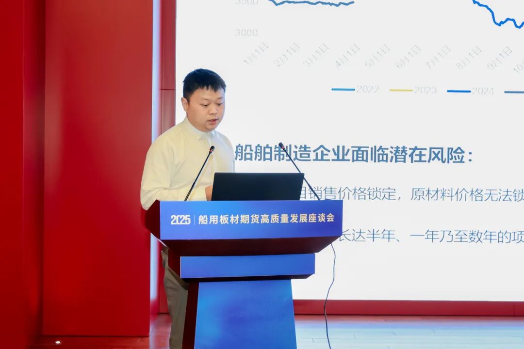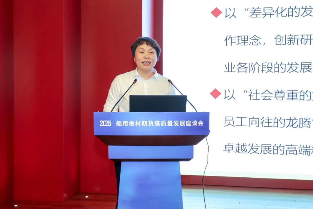 4月8日,由中國船舶工業(yè)行業(yè)協(xié)會、中國鋼鐵工業(yè)協(xié)會和上海期貨交易所主辦,江蘇龍騰特鋼集團有限公司承辦的2025年船用板材期貨高質(zhì)量發(fā)展座談會在江蘇省常熟市召開。會議旨在進一步提高船舶企業(yè)運用期貨工具抵御原材料價格大幅波動的能力,交流各企業(yè)、金融機構(gòu)在船板期貨實際操作中的經(jīng)驗,研究當前船板期貨實操過程中存在的困難和問題,探討產(chǎn)業(yè)鏈合作創(chuàng)新發(fā)展的新舉措。中國船協(xié)副秘書長譚乃芬主持會議。