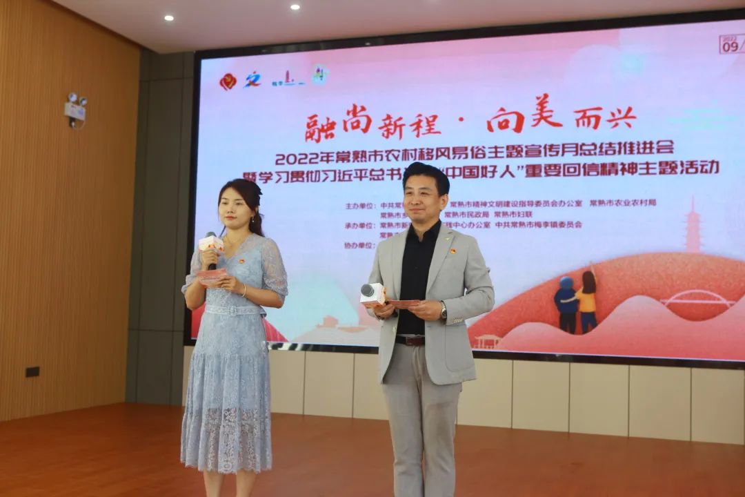 2022年9月29日,常熟市農(nóng)村移風(fēng)易俗主題宣傳月總結(jié)推進會暨學(xué)習(xí)貫徹習(xí)近平總書記給“中國好人”重要回信精神主題活動在聚沙西村新風(fēng)大禮堂隆重舉行,常熟市委宣傳部副部長、市文明辦主任王燕,梅李鎮(zhèn)黨委書記許曉波,龍騰特鋼董事長季丙元及相關(guān)單位領(lǐng)導(dǎo)和村民代表參加活動。